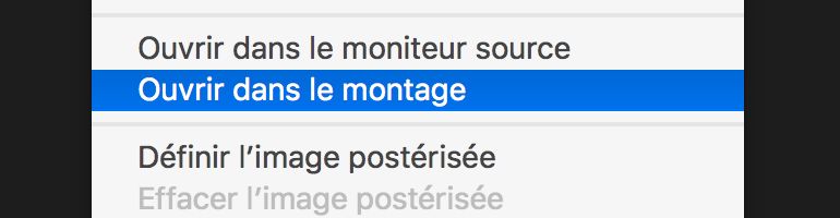 Pour ouvrir une séquence multi-caméra dans la timeline et voir de quoi elle est faite, cliquez-droit sur le nom de la séquence dans le chutier, puis choisissez « Ouvrir dans le montage ».